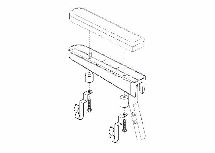 The armrest cane clips (Style B) for Pride Mobility scooters mounts to underside of armrest and will fit on either the left side or the right side armrest