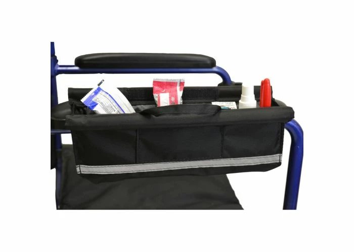 This makes the armrest pouch the perfect complement to wheelchairs with wide wheels, but it can also be used on any mobility scooter or power chair