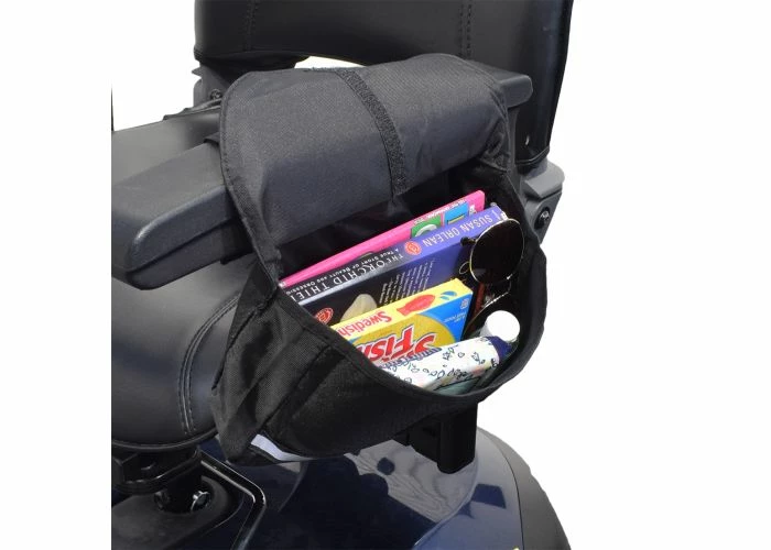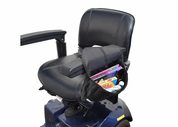 This 10″L x 7″H x 2″D small saddle bag is a single pocket bag that mounts to any armrest to keep your personal belongings close to you and can be mounted on the inside or outside of your armrest. The small bag is the perfect sized saddle armrest bag for most applications. In addition, it includes 300-yard visible reflective safety tape for enhanced visibility in low light conditions.