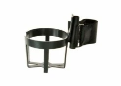 This cup holder easily attaches to round tubing with a diameter from 5/8″ to 1″