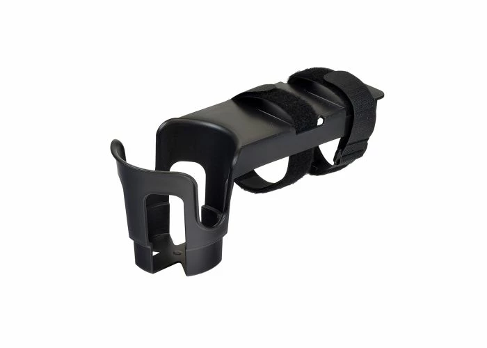 A copious amount of thought went into the design of this scooter cup holder. Not only does it mount securely on a myriad of armrest types; the basket is made to hold everything from big bottled drinks to odd sized coffee mugs. Slots on either side allow the mug handles of your favorite drink to slip right on down without hanging up on the rim. The Nearly Universal Cup Holder comes with two Velcro straps as well as a pair of stick-on foam pads to allow you to get a firm grip.
