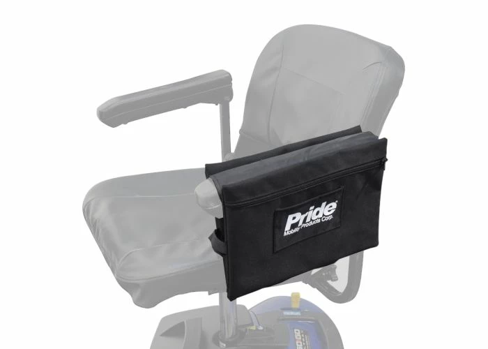 This saddle bag rests directly on the armrest of your mobility scooter’s seat.