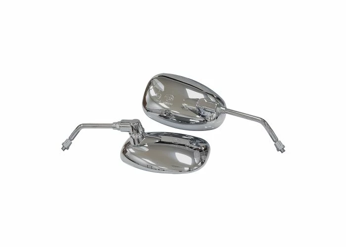Here are two chrome-finish scooter mirrors in a matched left and right hand set