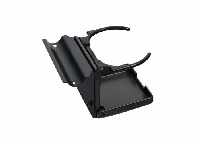 To install this cup holder, you must remove the armrest pad. The bracket on the back of this holder fits onto the round tubular part of the weldment, with the armrest pad re-screwed back over it. It is almost as fast to install this piece as it is to describe how to do it!