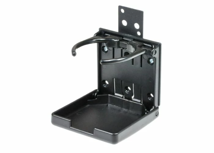 Assembly includes: large flip-up cup holder, Quantum style mounting bracket, and mounting hardware.
