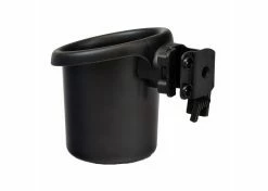 Our cup holder for the Jazzy Passport power chair mounts right at the end of the left armrest of the Jazzy Passport and is large enough to hold most cups and bottles.