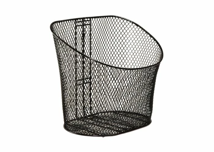 Angled 10-1/4″ x 14″ x 9″ oval wire basket mounts on the tiller in the front of your Pride mobility scooter