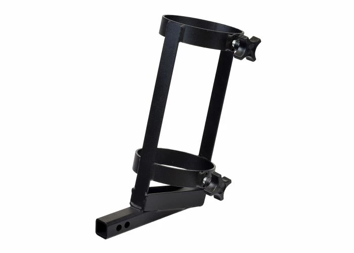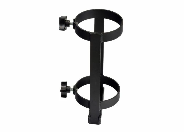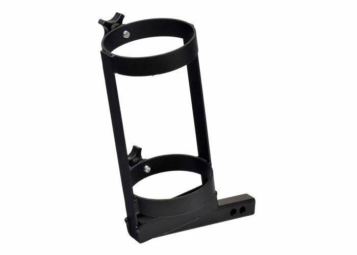 The oxygen tank holder will accommodate both the D and the E size oxygen cylinders. A pair of lock knobs is included.