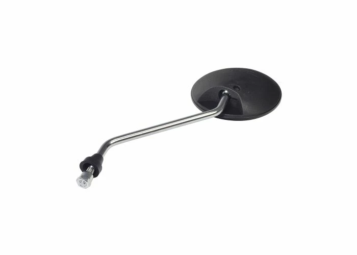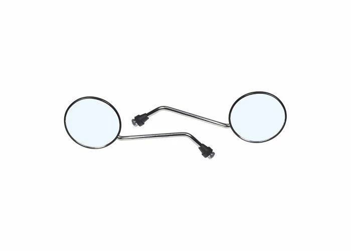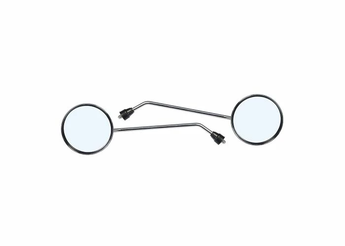 These nice & shiny mirrors use the common right-hand (clockwise) 8 x 1.25 metric thread and are mountable on a very wide variety of snowmobile and scooters brands and models. Most current models have special mirror receptacles mounted on both sides of the handlebar. If mirrors are not factory or dealer-installed items, usually these threaded receptacles are covered by a removable plug.