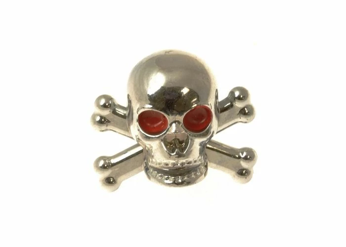 You can really dress up your scooter with a rakish chrome Skull & Bones inner tube valve stem cap. Screw it on in lieu of that feeble little piece of black plastic that crowns the stem of your inner tube and become the envy of your block.